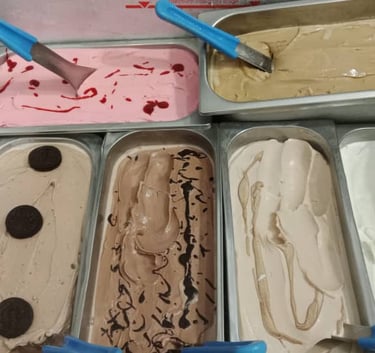 Homemade food and pizzas, traditional homemade ice cream,